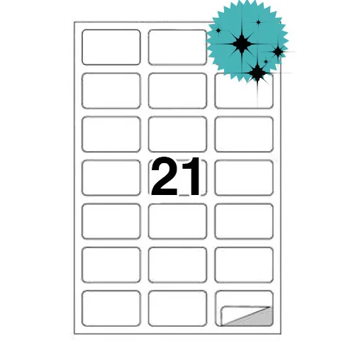 Etichette laser in A4, poliestere bianco lucido, formato 63,5 x 38,1 mm.